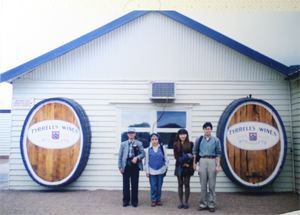 | 6月2日(火) 7時起床今日は、車と専属のネビゲーターを貸し切り、ワイナリー巡りへハンターバレーへ行きました。ホテ ルを8時に出発して、約3時間で着き、ワイナリー巡りのスタートです。まずは一軒目。 TYRRELLS WINES に到着。早速試飲です。ここでいっぱい買うべきか・・・ 2〜3種類試飲して、1本だけ買いました。この先おいしいワインが有るのかわからないのに、1本だけでいいのか? |