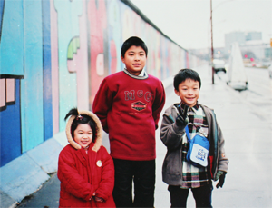 ベルリンの壁です。大部分が移設されたものだそうです。きれいにペインティングされています。当時、実際に壁が有った所をみせてもらいましたが、この壁が国をわけていたんですね・・・。ちょっと寒いなー。 |