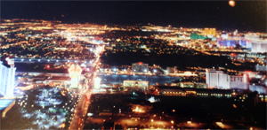 10月24日(日) ストラトスフィア106階からの眺めです。ストリップの一番北の端に位置するホテル。そびえ立つ352メートルのタワー。 絶景かな・絶景かな〜〜〜〜。 |