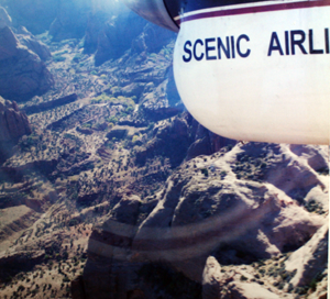 外の眺めは、今まで経験も見たことも無い、まさしくファーストエクスペリエンスです。 グランドキャニオン空港まで1時間15分のフライトでした。あ〜〜楽しかった。 |