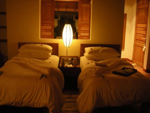 貸し切り状態のプールです。 アナンタラスパの夜の様子です。 |