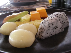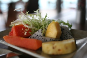 コーヒーや紅茶なども用意されています。 朝食には色々なフルーツがならんでいます。 この眺め、サイコーです。 ![]() シーカヤック三昧の一日。 |