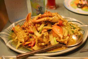 遠浅で波のない海は子供に快適です。 Fudanからの眺め。 BanHauraの中央に、穴があいていて下は海になっています。ここから魚が泳いでいるのが見えました。 カニ料理をいただきました。味付けは辛くなくとってもまろやかでした。カニはむくのがちょっと大変でした。これで風さえなければ・・・・。 |