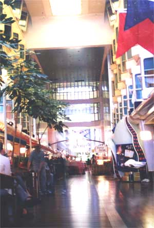 船内は、ショッピングセンターのよう、レストラン、ブティックが立ち並び、すべて免税です。さて、ディナーは、バイキングもいいし、シーフードもいいし、と迷った結果、 ”Happy Robster”というレストラン、エビ、ザリガニをワインと一緒に、いただきました。とにかく、量が多くて、ワインも飲み過ぎ、しばらく動けなかった(YOKO)。気ずいた時には、お店、ディスコ、バーが終わってて、トホホ、、、。シーサイドのキャビンはおすすめです。眺めも格別です。 |