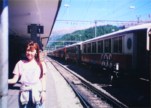 第3日目 9月10日(水) 朝はホテルで朝食をとり早々にツェルマットへ出発。途中クールで乗り換えです。サンモリッツ8:00発‐クール10:05着。ここからツェルマットへは氷河特急のパノラマ車両です。我々の乗る列車はG列車と呼ばれ、クール10:57発‐ツェルマット16:42着。1時間程度余裕があるので、ちょっと町中をうろうろ、デパートでランコムの口紅がセールだったので、1つ購入しました。おまけに香水のサンプルをもらってうれしかったです。街の道路は、石畳で平穏で静かな街という印象を受けました。銀行に行ってありったけのスイスフランをイタリアリラに両替しているうちに、出発の時間です。駅へ戻りホームを確認、ホームへ行くと、そこには真っ赤な車両が待っていました。車両を確認し、乗り込みいよいよ出発です。回りには、日本人が全然いませんでした。(ラッキー!&めずらしい!)ちなにみ、隣の席は、イタリアのおばさんがすわりました。車両はすべて予約で満席状態です。10時57分、列車が滑り出すように動きだしツェルマットへ向け、ついに出発です。出発してすぐに、大きな声でお客に話しかけてくるおにいいさんがペンと紙をもってやって来ました。何かの予約をとっているようですがイタリア語で何を言っているのかさっぱり分かりません。どうやら、食堂車の予約をとって いるのでしょう。すでに、* \約をとっていた私達は、特に動ぜずにいたら、11時半 頃、イタリア語で何かのアナウンスが・・・ジャポネ・・サトウ・・この言葉だけを頼りに、食事だ!とピンと来て、いざ食堂車へ行ってみると、席が用意してありました。予約が取れたのは、12時10分だったので、ちょっと早いランチとなりました。お味のほうは、まあまあかな?外の景色が気になって、ちょっと 落ち着かなかったかな〜。食後、1時を回った頃、席に戻る途中、広大な山々の景色が窓ガラス一面に広がりました。間もなく、アンデルマットです。アンデルマットでチェルマット発サンモリッツ行の列車とすれちがいました。その列車は、山をヂグザグ登って行く様子を見ることが、できました。あっという間にブリーグまでは過ぎ、そこからは、車窓から、マッターホルンが、見えるようになり、いよいよチェルマットです。5時間45分の旅も、飽きることなく過ぎていきました。私達のホテルは、駅からすぐで、部屋のベランダからは、マッターホルンを望むことが、できました。街並みは、こじんまりとしていましたが、プチホテルが多く、どこも窓際には、きれいにお花が飾ってあって、とてもかわいく統一されていて、私達の目を楽しませて* ュれました。観光客の数は、さすが多かったです。 |