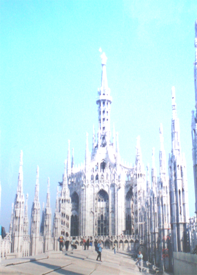 ミラノ最終日、モンテナポレオーレ通りをプラプラと歩き回り、買い残したものはないかと、またまた街を探索した後、心に思い残さぬ様に必ず登ろうと思っていたDOMOに階段で登りました。ミラノの街を一望でき、もうすぐ去らなければならないことを思うと、とても残念に思いました。